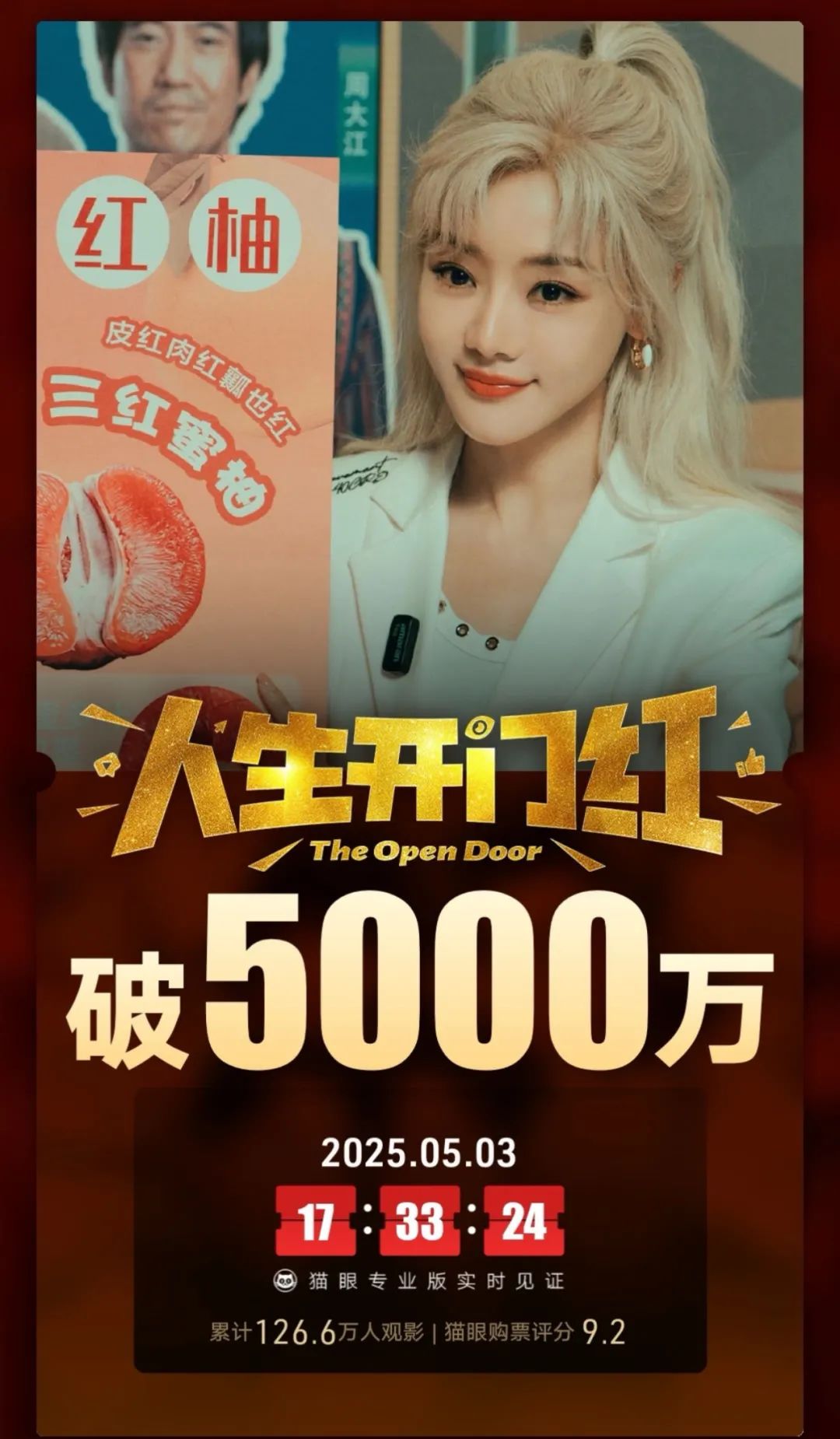 正式上映前被预测“有望成为档期黑马”的喜剧片《人生开门红》,截至5月3日17时,票房收入破5000万元,暂列五一档票房榜第五位。影片讲述了顶流网红小海茉与老板陷入绯闻风波,为化解危机,老板找来烤肠小贩周大江与小海茉组成“预制情侣”以转移公众视线,在成为新晋网红主播的过程中遭遇各种波折的故事,影片同时揭露了直播行业乱象。有观众在观影后,评价这是一部“完成度较高”的影片,演员阵容堪比“喜剧人开大会”,不失为五一档里的“喜剧之王”,尤其用黑色幽默解构“流量为王”时代网红圈怪诞行径,可谓既真实又大胆,不少网友直言:“这么敢拍!”“动了谁的蛋糕??”